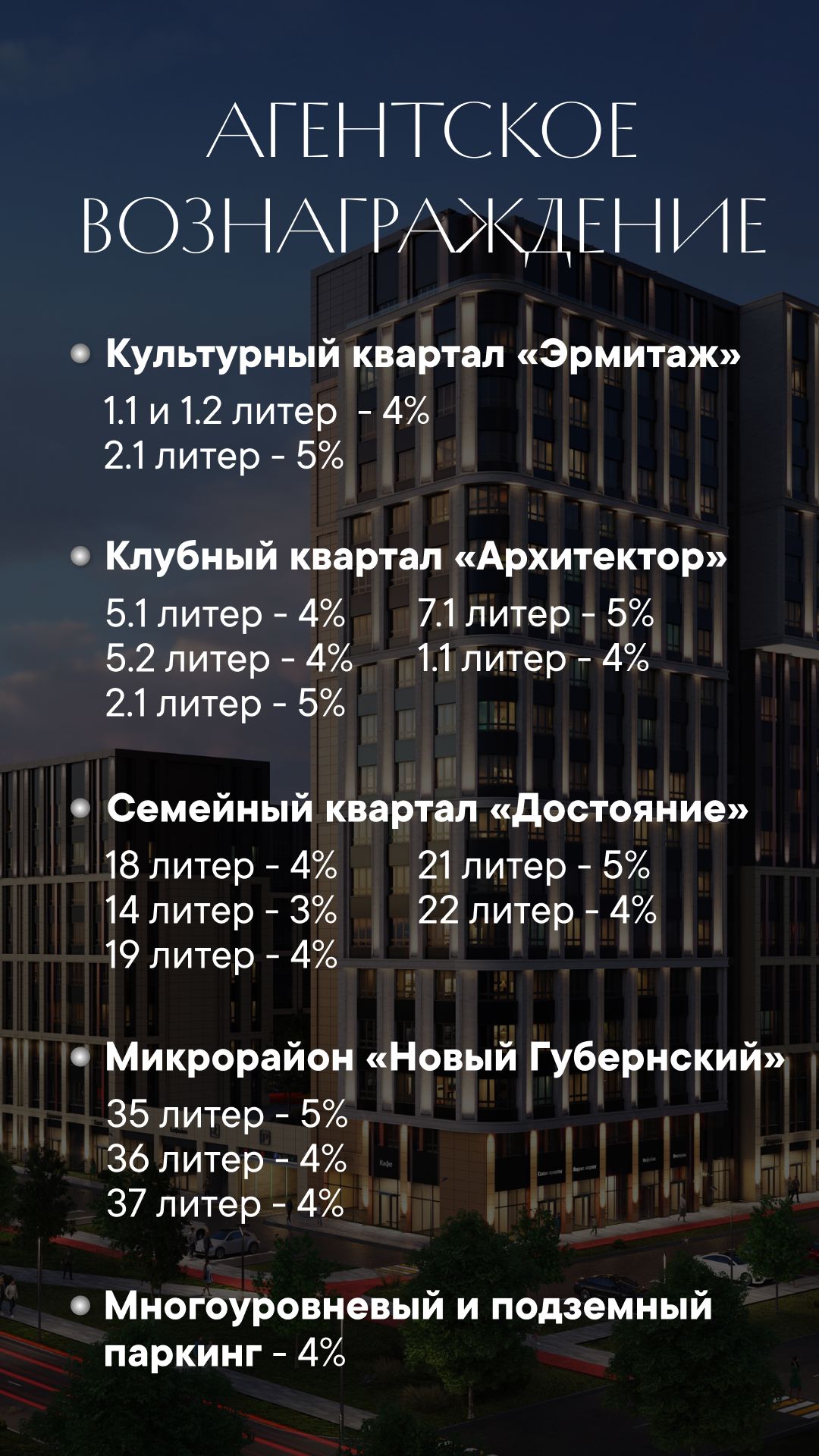 Агентское вознаграждение Таблица с ставками вознаграждения по жилым комплексам