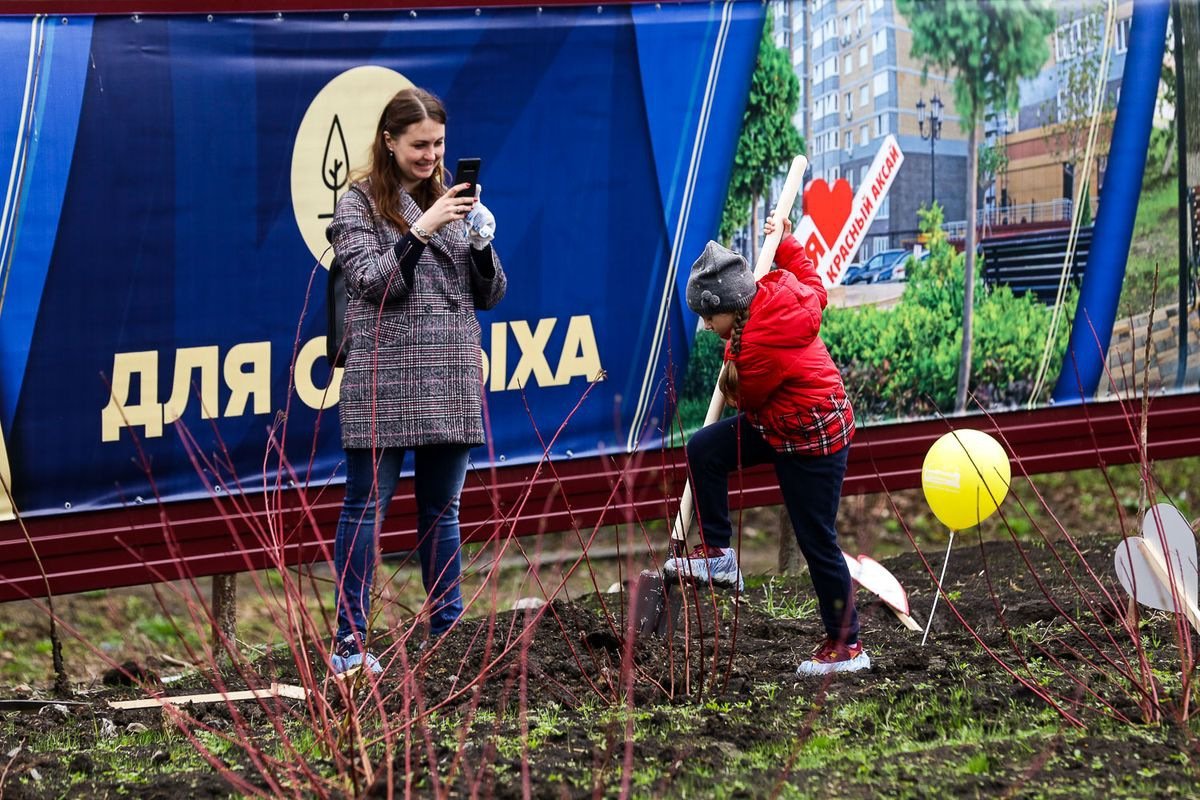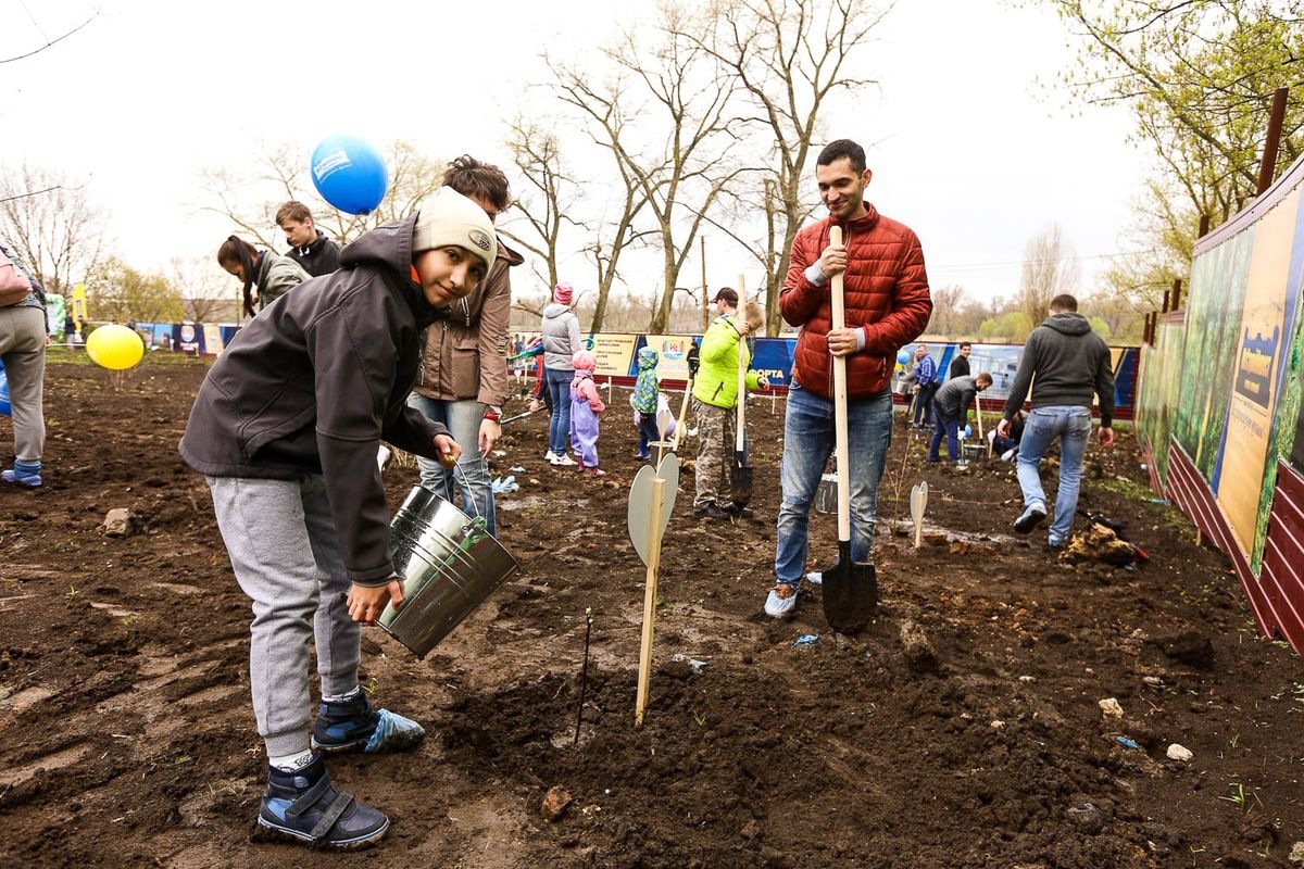 ГК «ЮгСтройИнвест» вместе с жителями высадила более 150 молодых деревьев в микрорайоне «Красный Аксай»