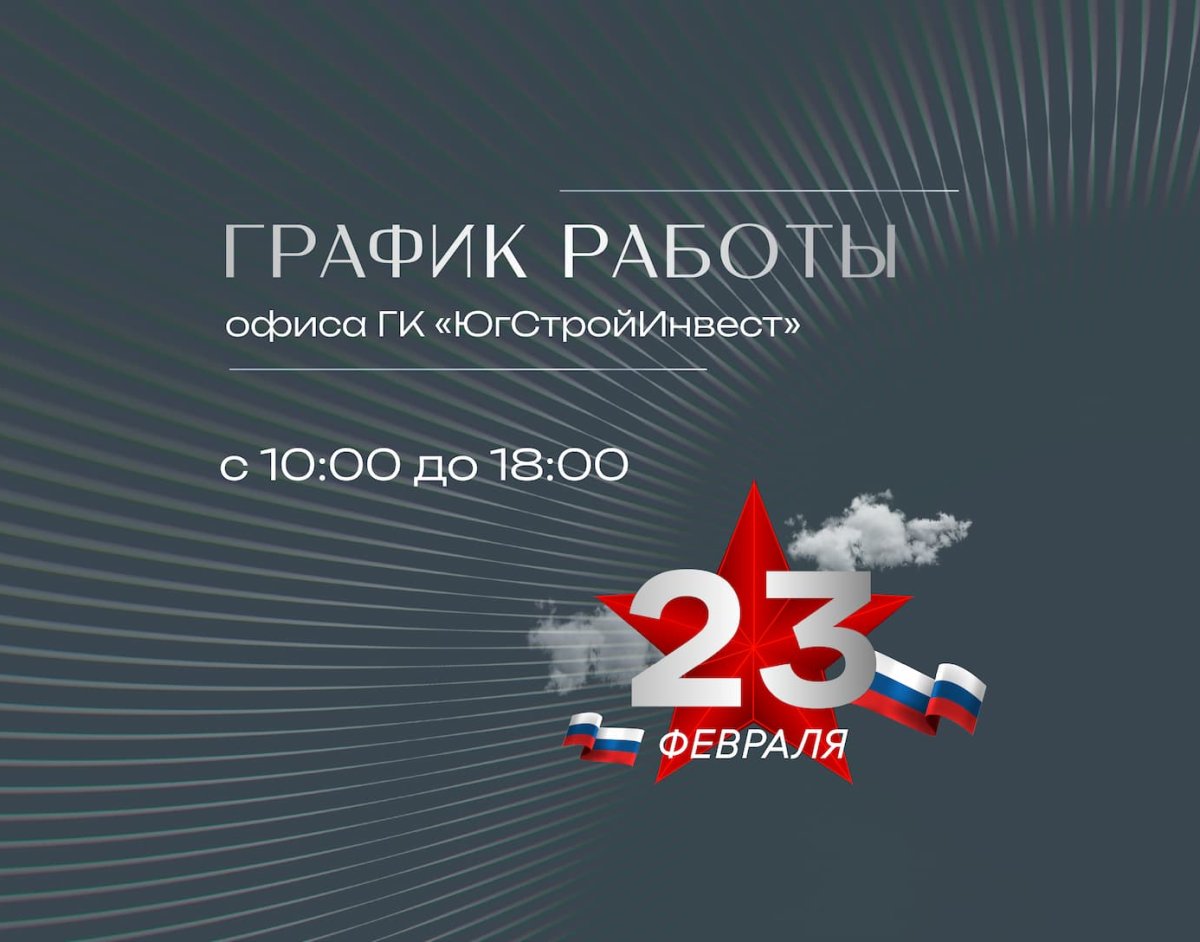 23 февраля офисы продаж ГК «ЮгСтройИнвест» работают по стандартному графику.