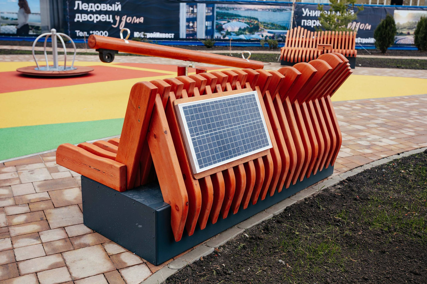 Отличительной особенностью дома являются зоны отдыха, оснащенные «умными» лавочками на солнечных батареях с возможностью подзарядки мобильных устройств.