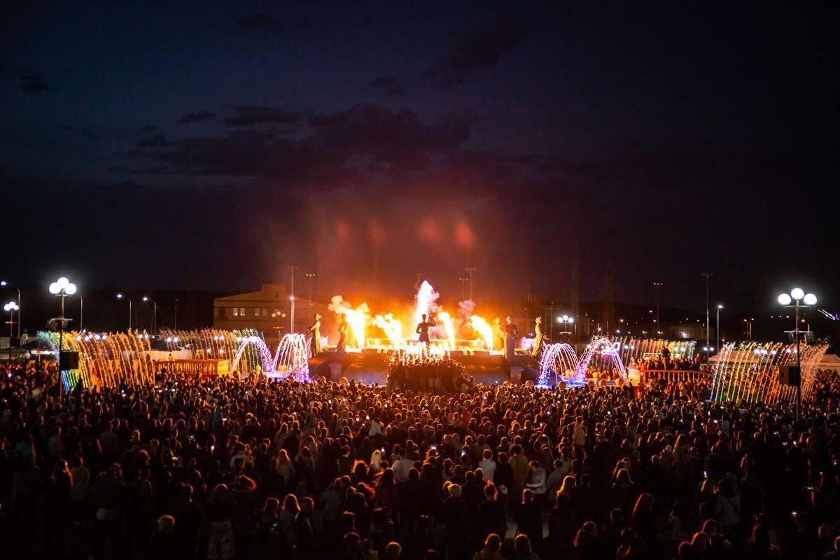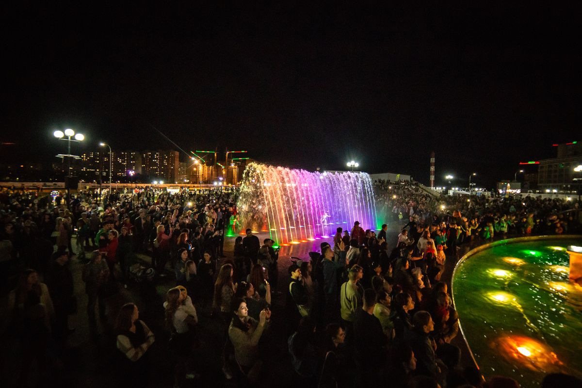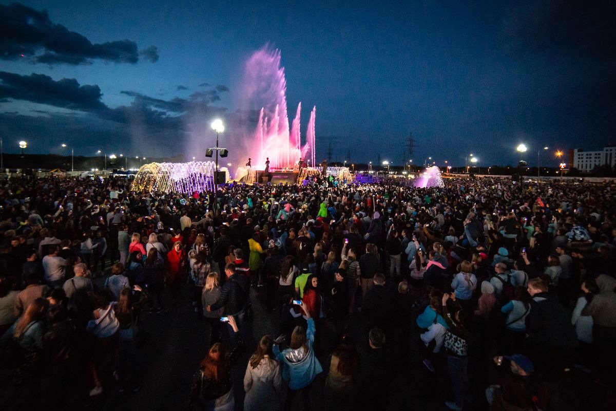 Специально к празднику в репертуар светомузыкального фонтана добавили десять новых современных и классических композиций. Они прозвучали в сопровождении игры света, вспышек огня и лазерного шоу.