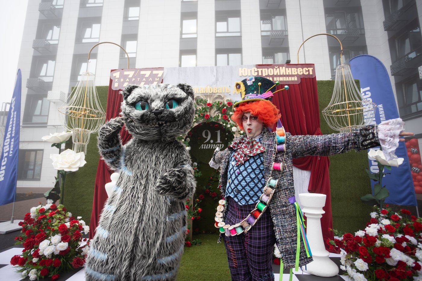 Загадочный Шляпник и пушистый Чеширский кот с первых минут погрузили новоселов в атмосферу чудес — сказка ожила прямо во дворе, а детский смех не стихал ни на минуту.