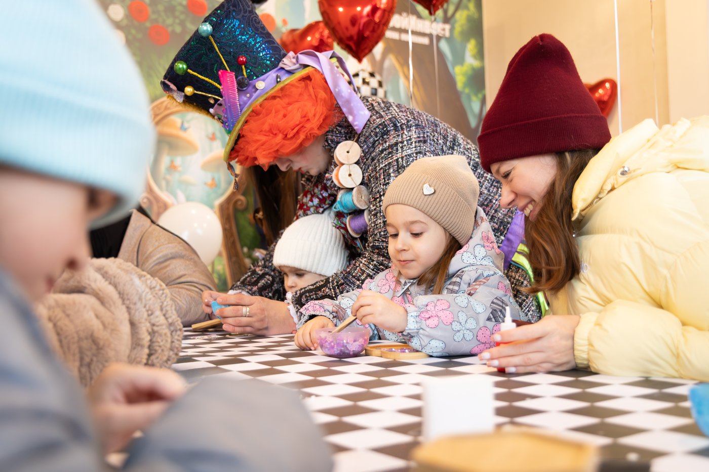 Гости с головой окунулись в творчество: дети увлеченно собирали мозаику на деревянных подставках под горячее, а взрослые мастерили ключницы — подарок для новой квартиры своими руками. Волшебную атмосферу дополнили необычные угощения: конфеты, которые «уменьшают» и «увеличивают» рост, вызвали искренний восторг у детей и взрослых.