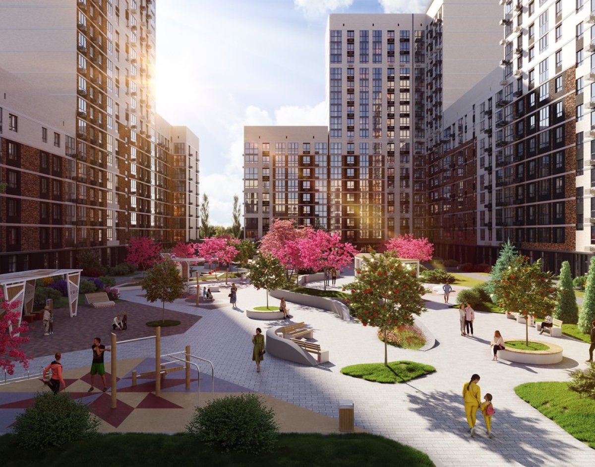 Дворы квартала полностью свободны от машин — здесь безопасно, тихо и просторно. 16 домов переменной этажности (от 6 до 18 этажей) откроют жителям виды на рассветы и закаты над зелёными кварталами. В шаговой доступности будет вся необходимая инфраструктура: три детских сада, школа, две поликлиники, а также физкультурно-оздоровительный комплекс.