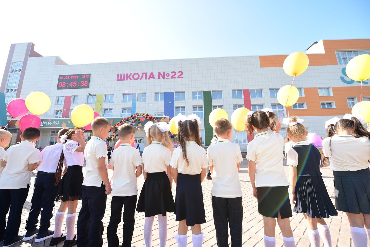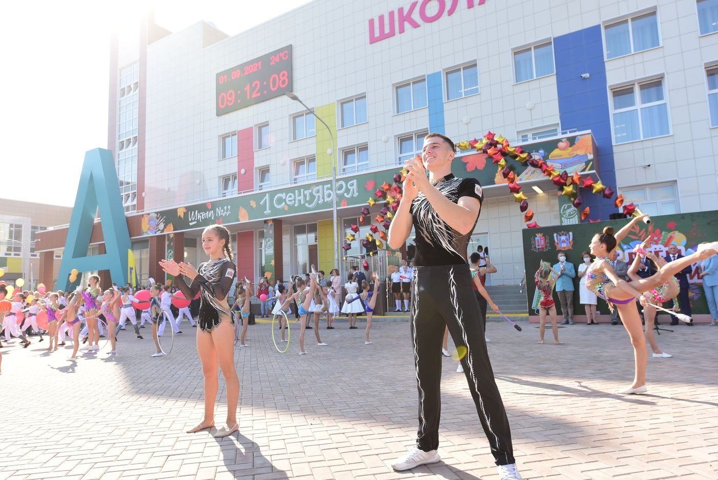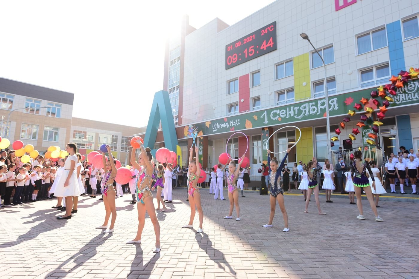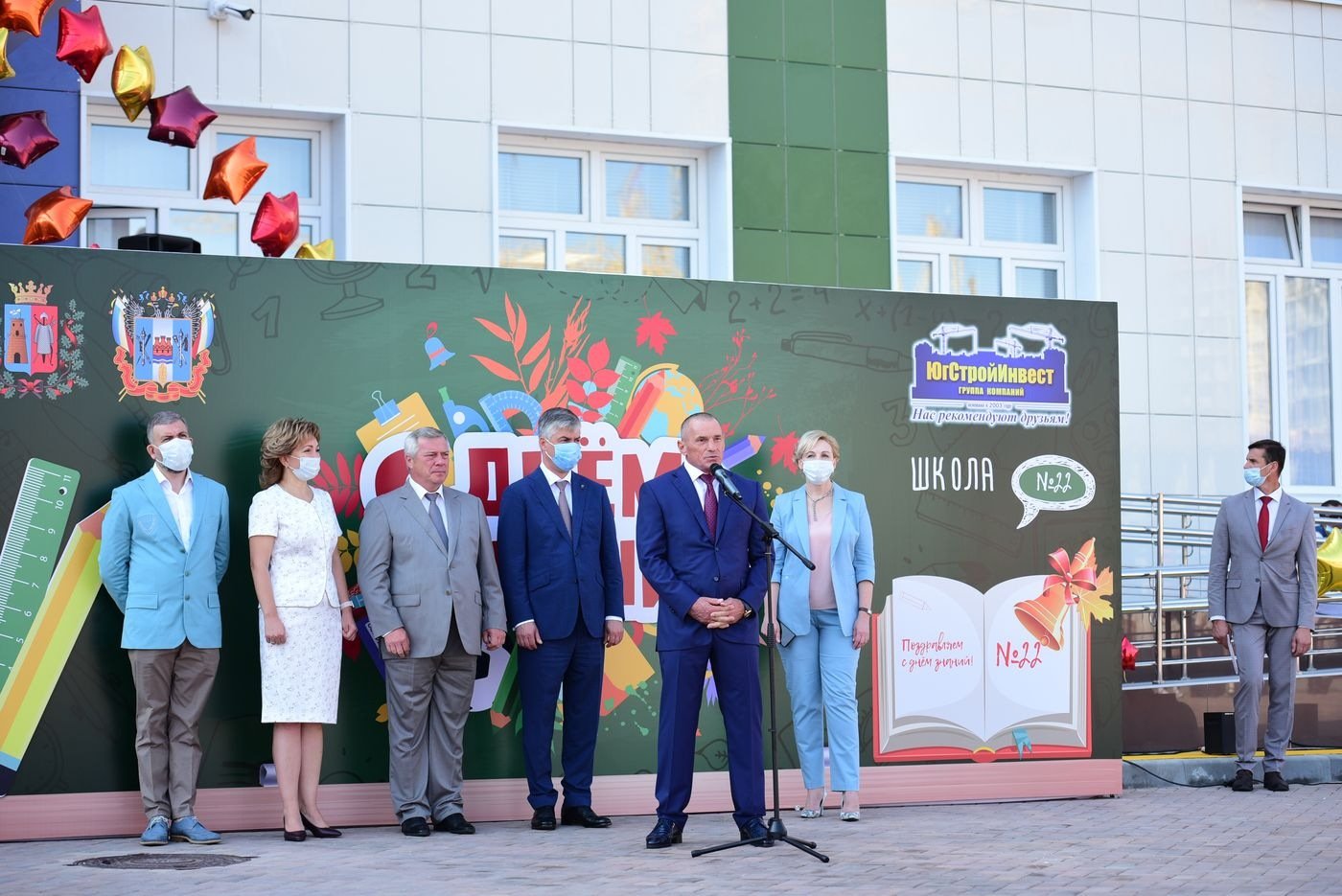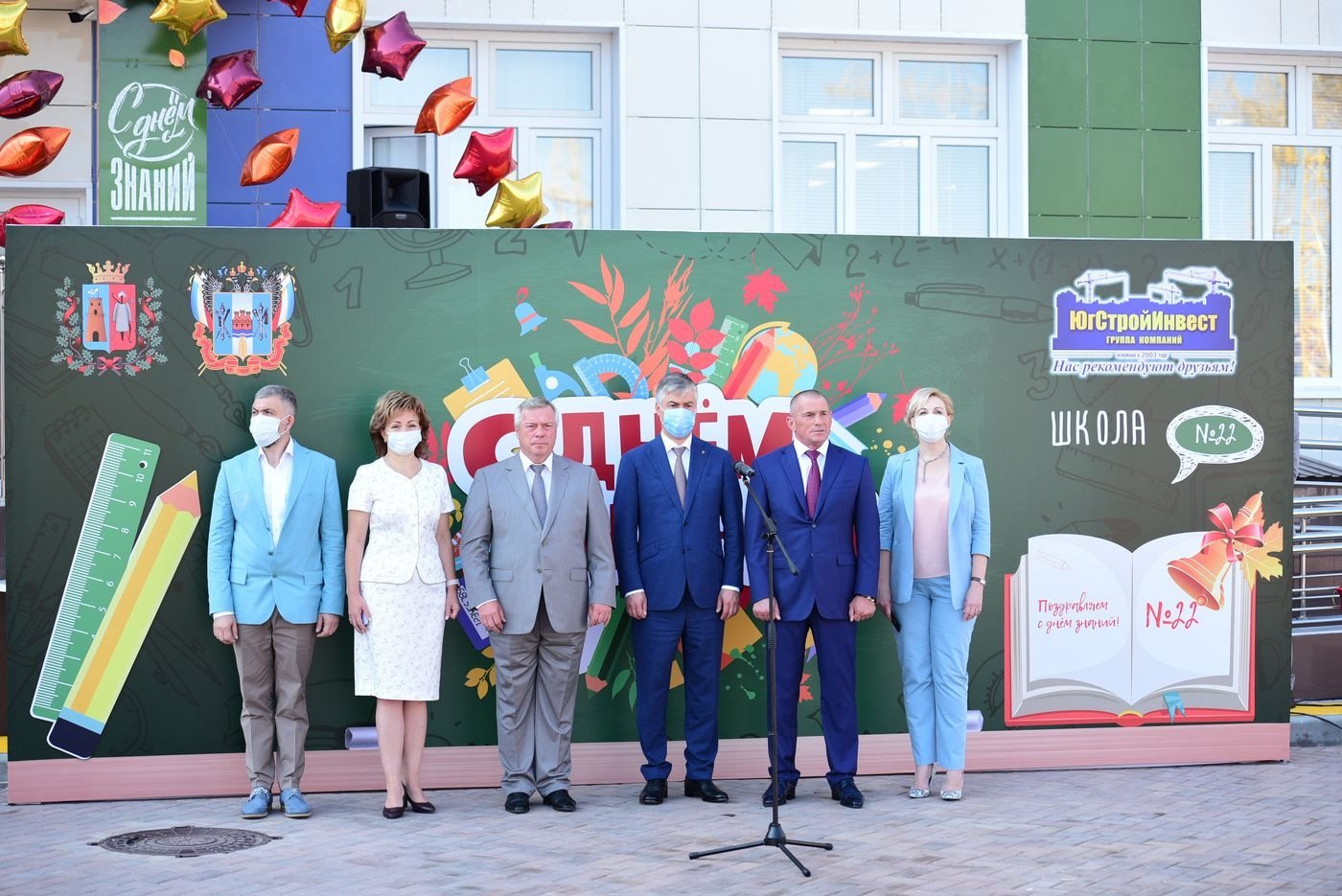 На торжественной линейке первоклассники прочитали стихи и запустили в воздух воздушные шарики. С песнями и танцами выступили юные артисты и даже спортсмены, ведь при школе открылся спортивный клуб. Поздравили ребят с началом учебного года глава Ростовской области Василий Голубев, глава администрации Ростова-на-Дону Алексей Логвиненко и генеральный директор группы компаний «ЮгСтройИнвест» Юрий Иванов.