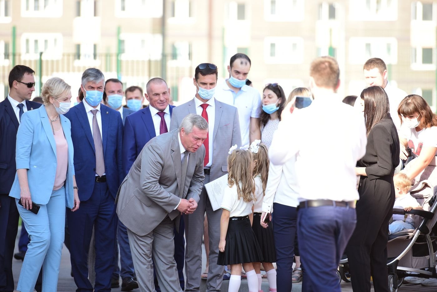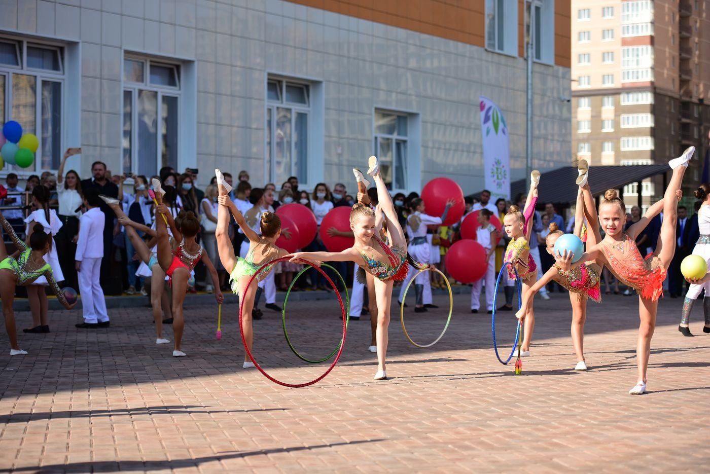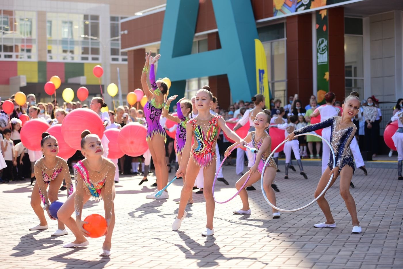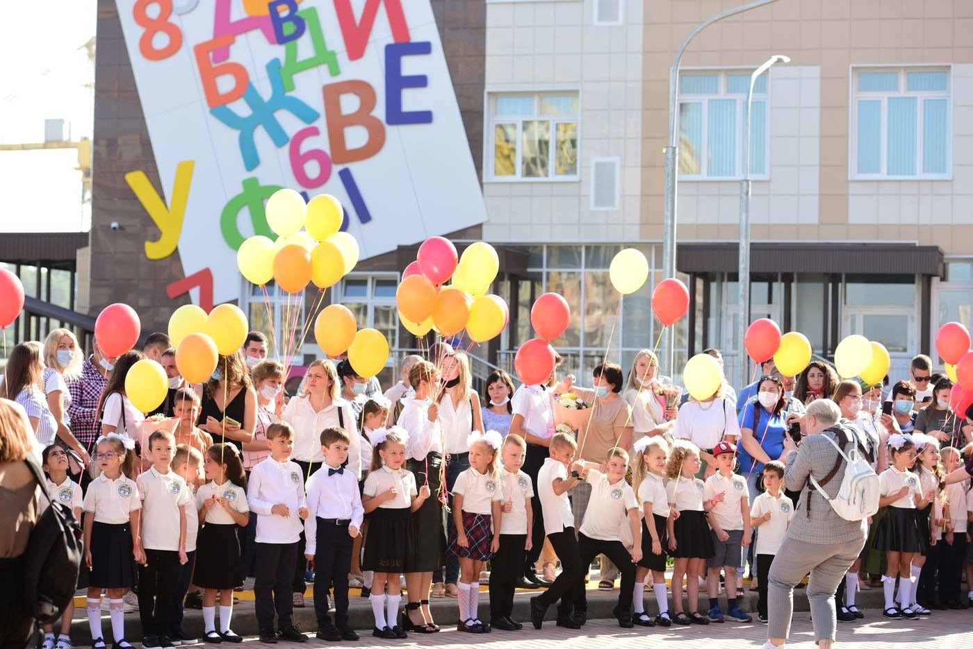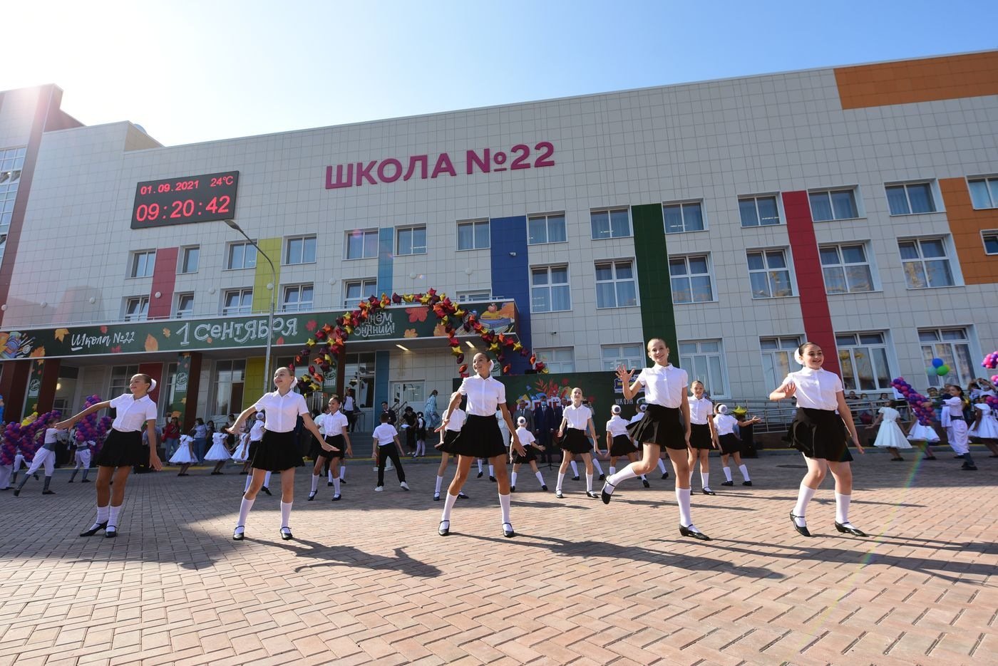 На торжественной линейке первоклассники прочитали стихи и запустили в воздух воздушные шарики. С песнями и танцами выступили юные артисты и даже спортсмены, ведь при школе открылся спортивный клуб. Поздравили ребят с началом учебного года глава Ростовской области Василий Голубев, глава администрации Ростова-на-Дону Алексей Логвиненко и генеральный директор группы компаний «ЮгСтройИнвест» Юрий Иванов.